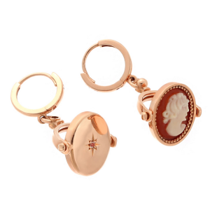 브라운 까메오 양면 다이아몬드 링귀걸이