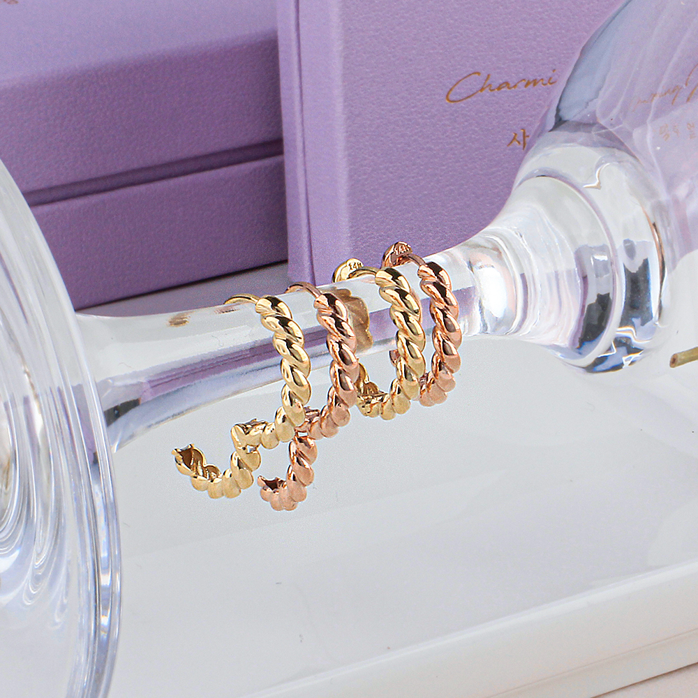 14K링 귀걸이 원터치 볼드 꼬임 꽈배기 밧줄 데일리