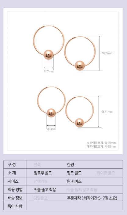 14K 골드볼 파이프링 귀걸이