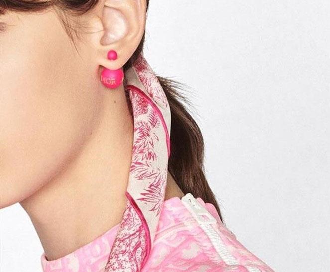 DIOR 디올 트라이벌 로고 이어링 네온핑크