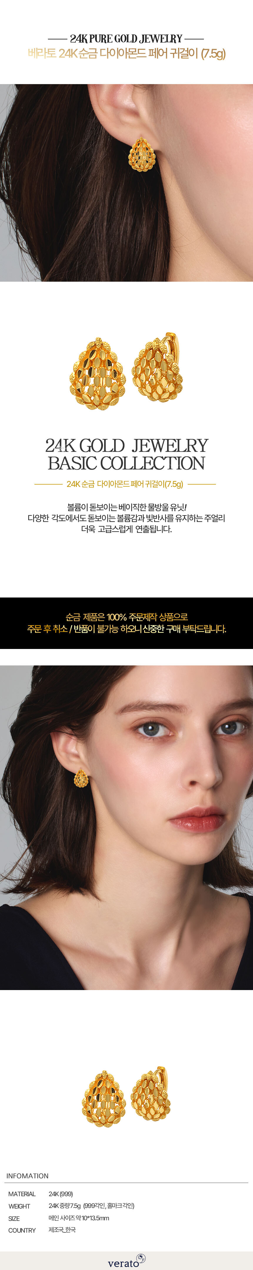 베라토 24K 순금 다이아몬드 페어 귀걸이(7.5g)