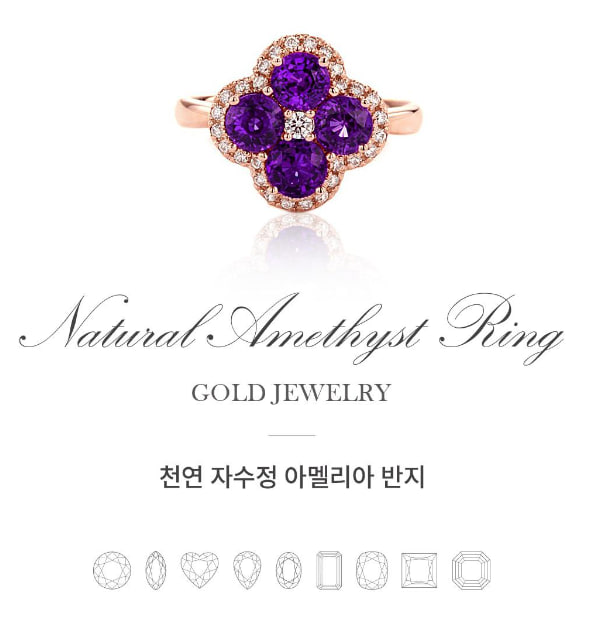 14k 천연 자수정 아멜리아 반지