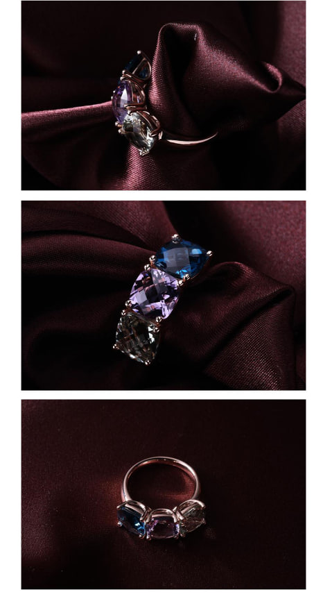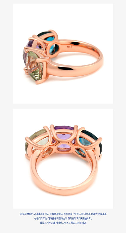 18K 반지 매니 삼색 컬러 자수정천연 반지