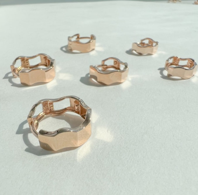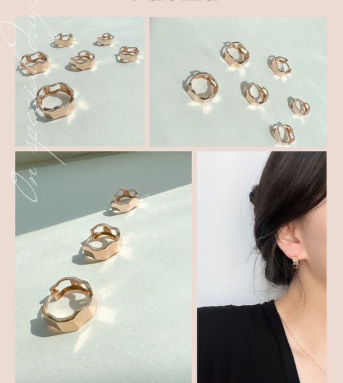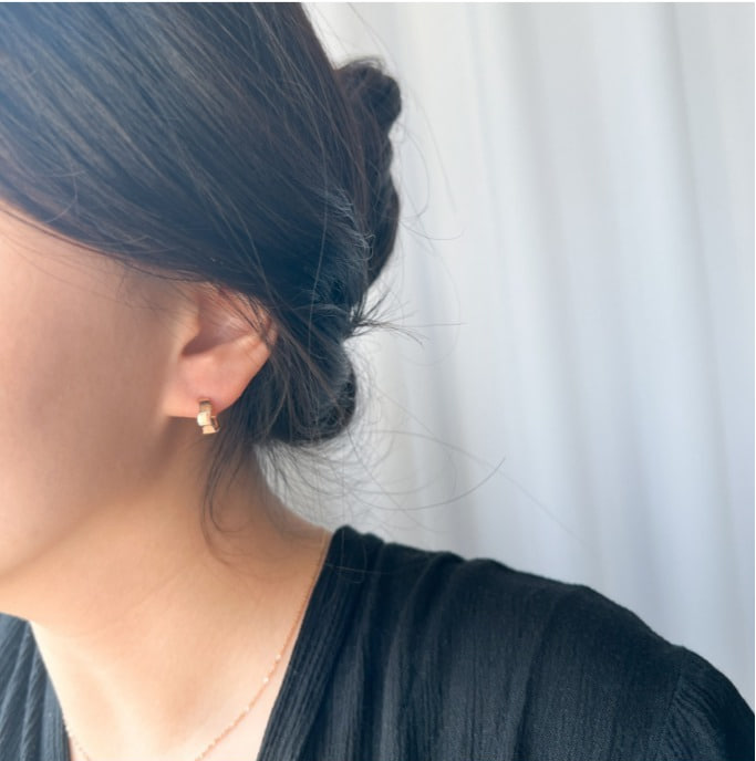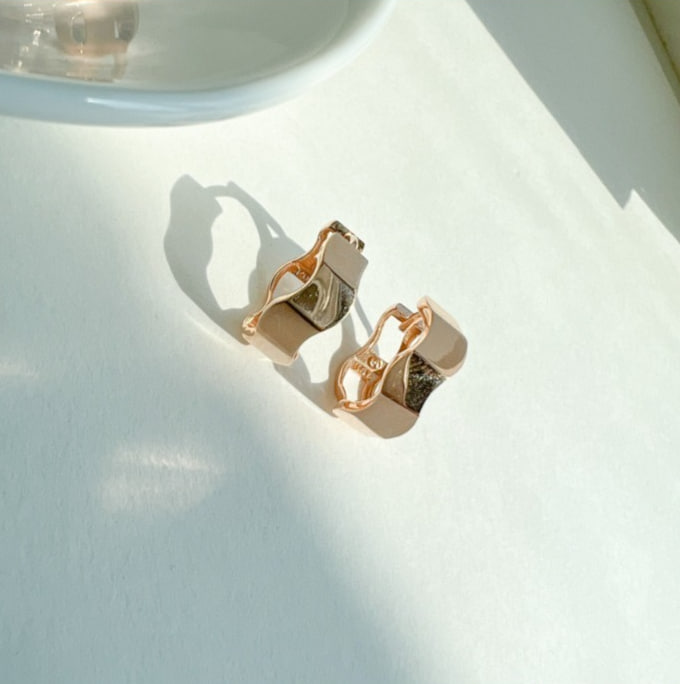 심플 스퀘어 귀걸이 물결 귀걸이 14k소로즈골드