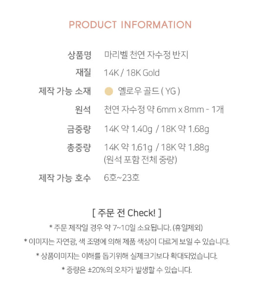 골드앤 14K 마리벨 천연 자수정 반지