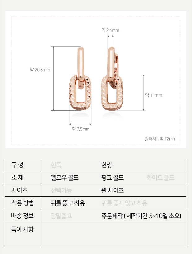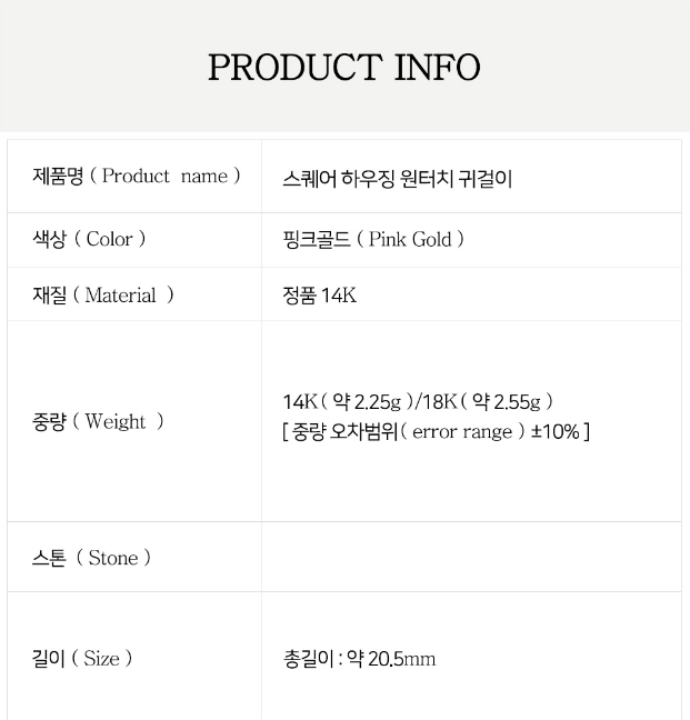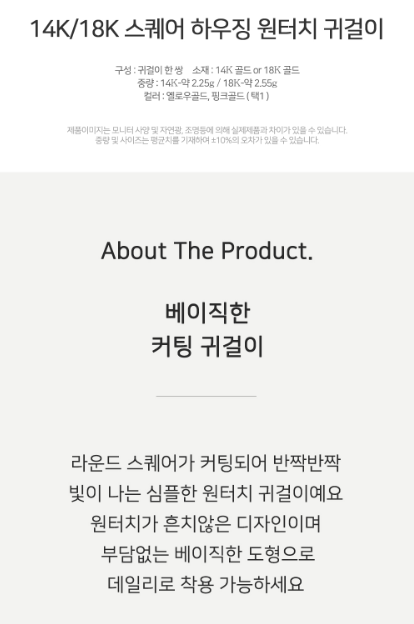 14K18K 스퀘어 하우징 원터치 귀걸이 E26-84