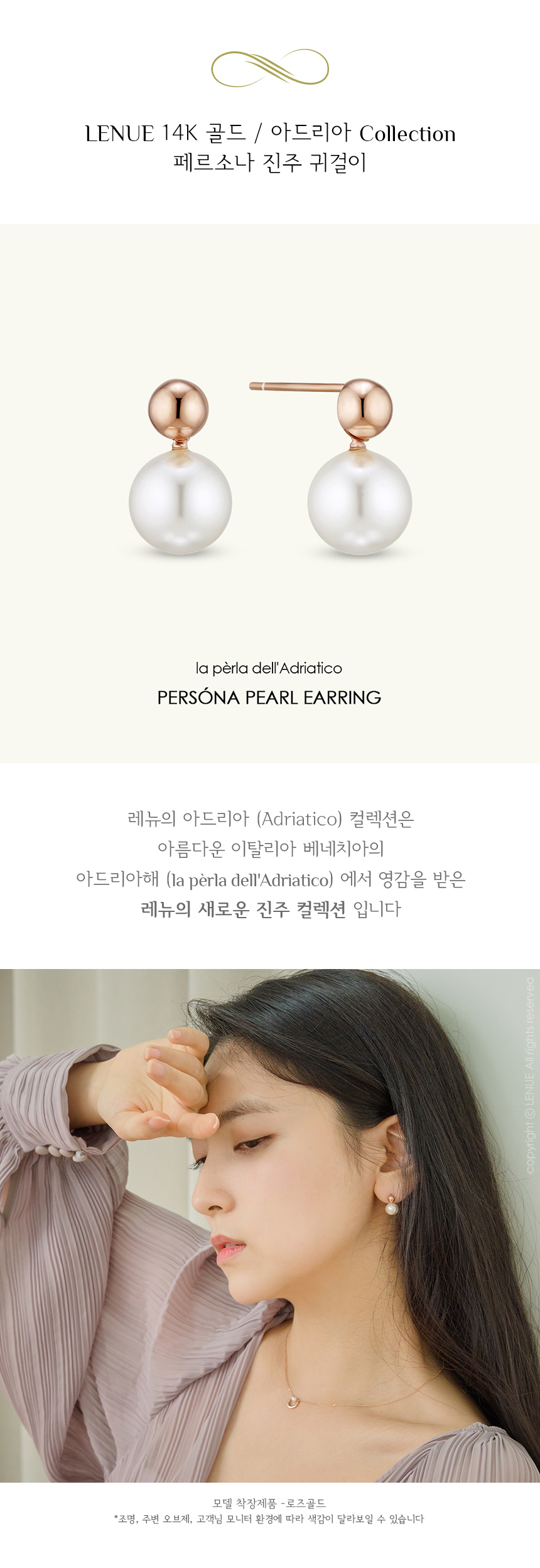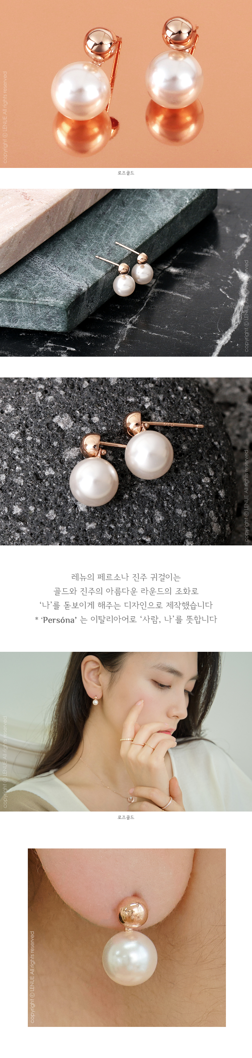 레뉴 페르소나 크리스탈 진주 귀걸이 14K 골드 볼 데일리